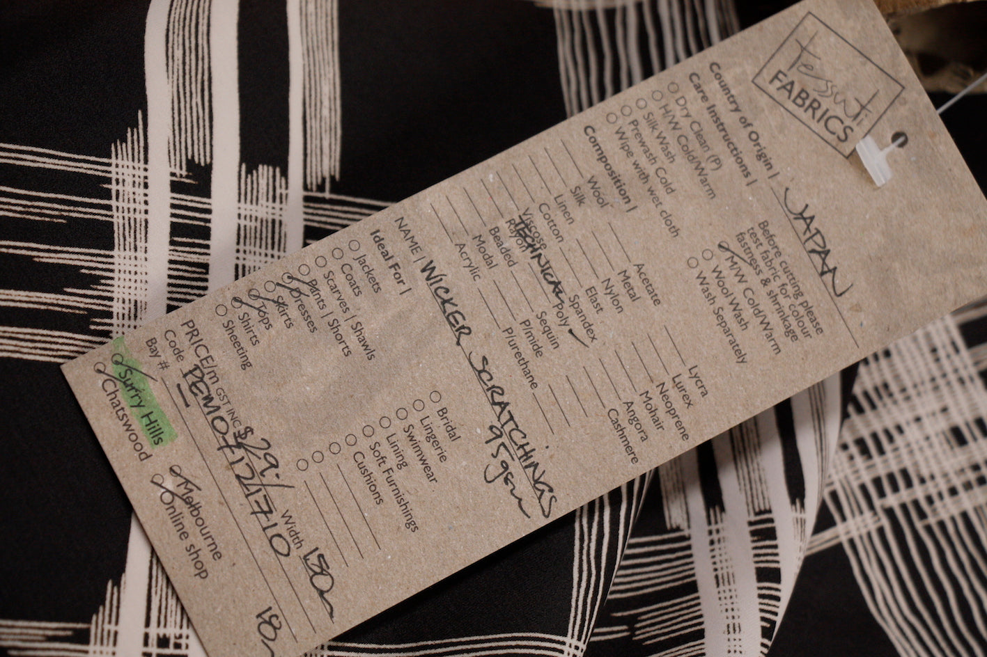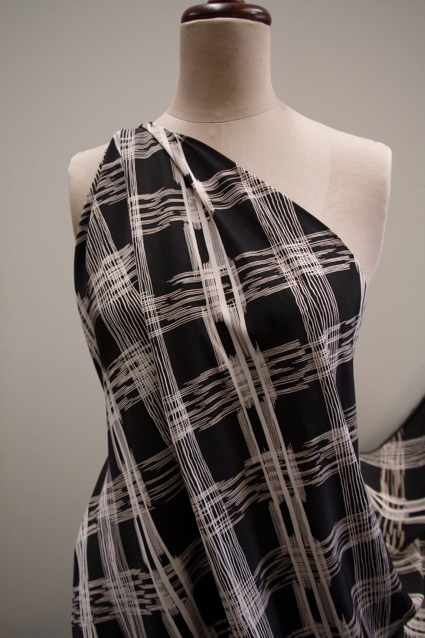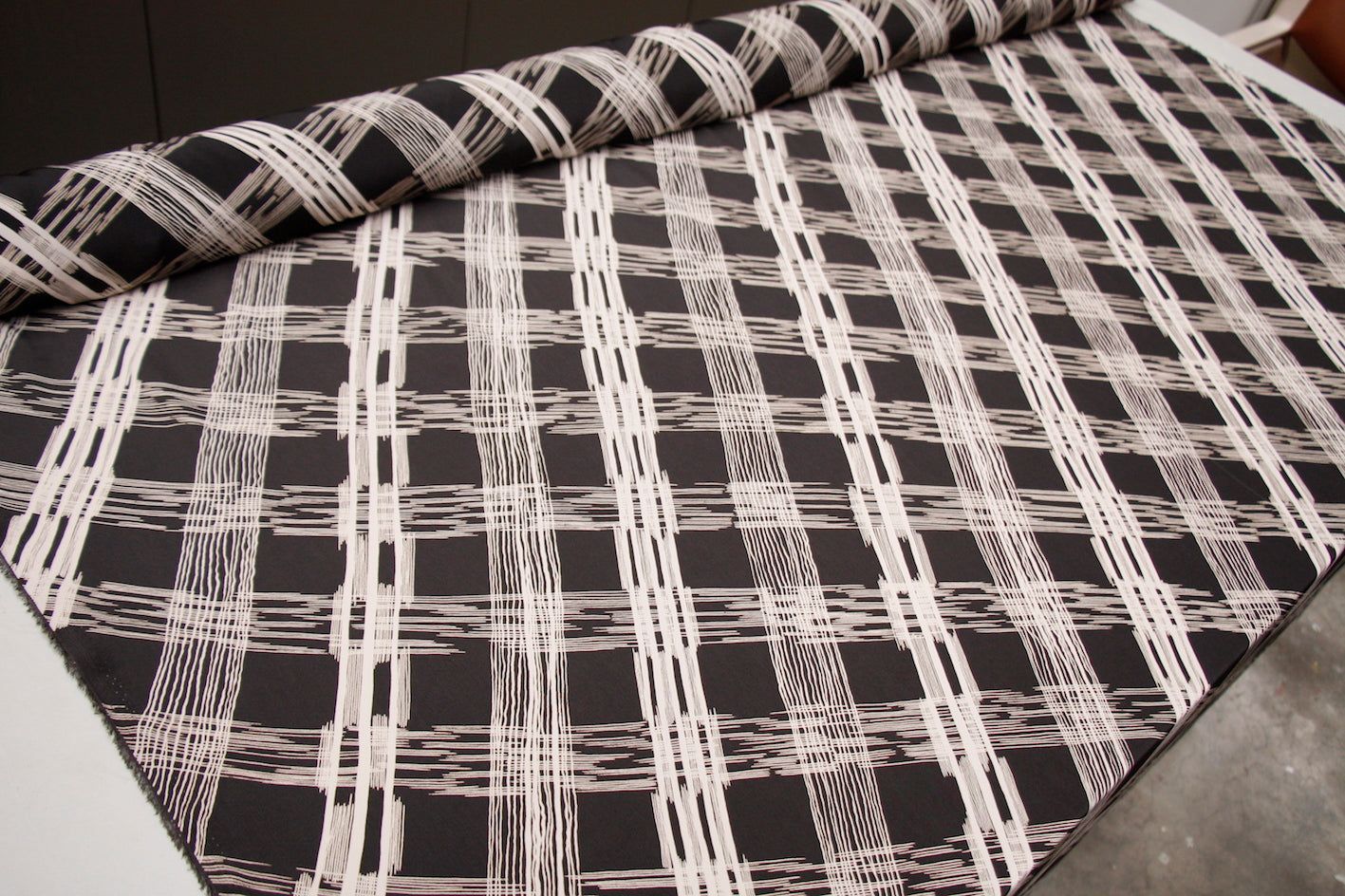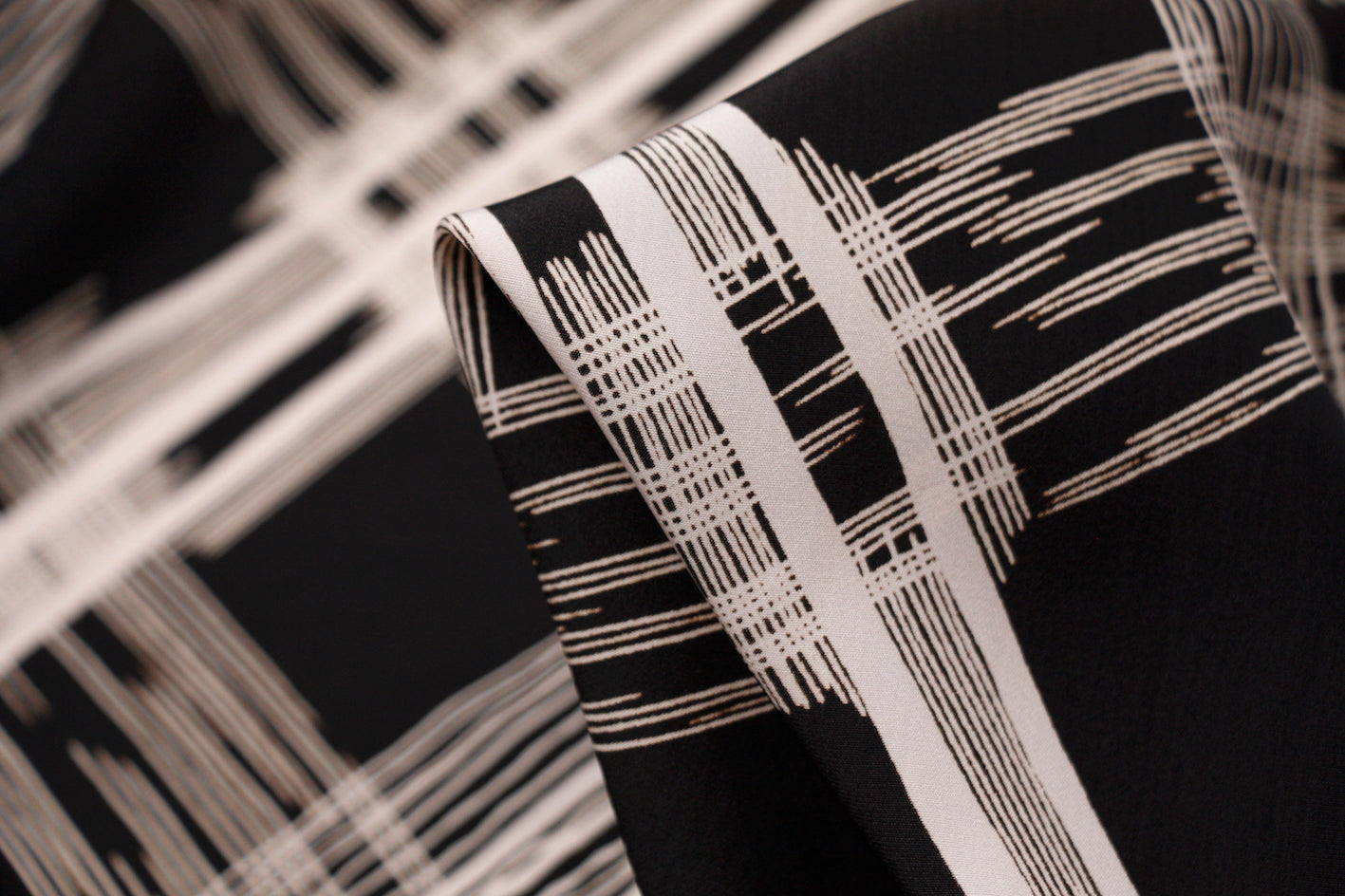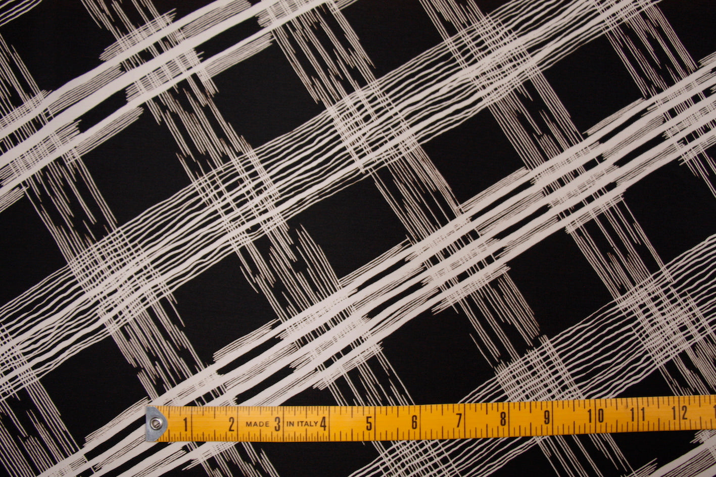 Black/off white printed Japanese technical 100% polyester. 150cm wide. Weight: 95gsm